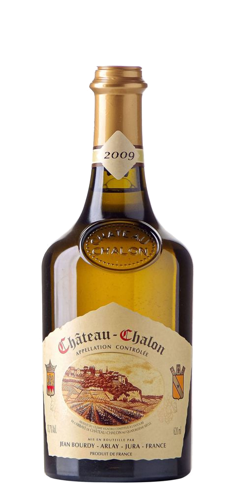 Château Chalon. Diese erste 1er Grand Cru Lage Frankreichs bringt Vins Jaunes ausschließlich von Savagnin, der hier auf blauem Mergel wächst. Die Weine von Château Chalon müssen wenigstens 6 Jahre und drei Monate in nur zum Teil gefüllten Fässern unter dem Voile - einer Schicht Florhefen, die den Wein abschließen und ihm eine besondere Aromatik schenken - unberührt liegen. Vin Jaune von Château Chalon ist nusswürzig und außerordentlich langlebig. Er wird auf eine spezielle, Clavelin genannte Flasche gezogen, die mit ihren ungewöhnlichen 62 CL in etwa dem Volumen entspricht, das von einem Liter Vin Jaune nach der gut 6jährigen Reife bleibt.